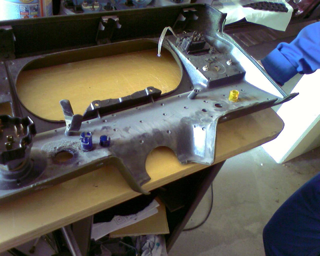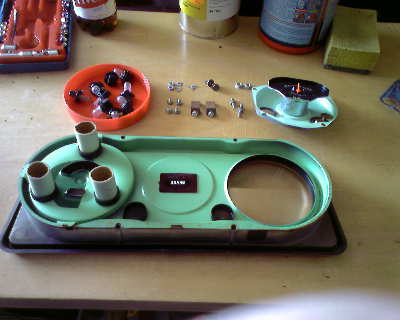 Das Armaturenbrett haben wir letzten Sonntag komplett ausgebaut. Es wird nächste Woche den vierten (und hoffentlich letzten) Anstrich erhalten.