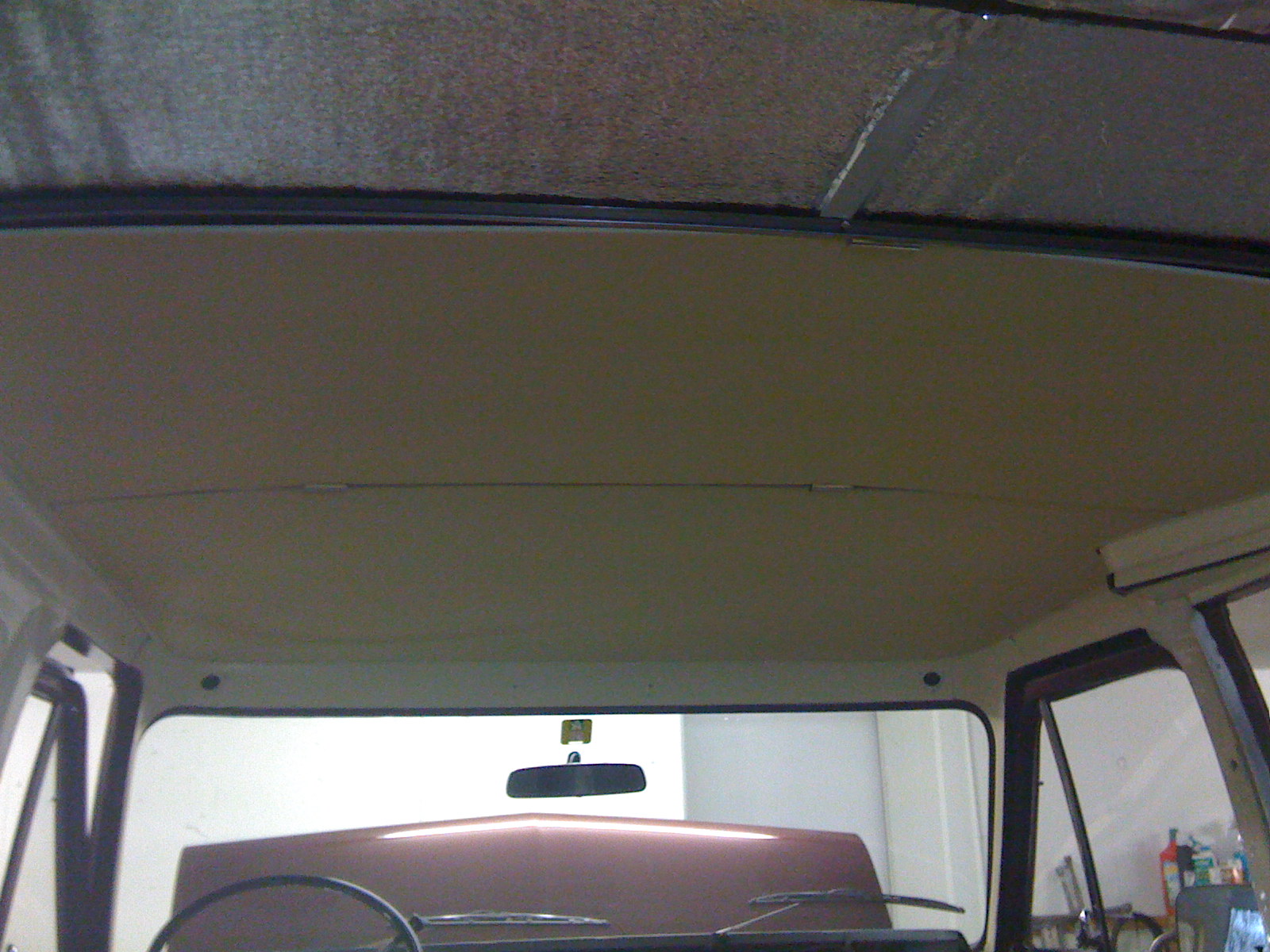 Das Himmelstück im Bug war das 2.-komplizierteste, wir benötigten auch den halben Samstag dazu. Teil 2 und 3 konnten wir heute in knapp 3h beziehen und montieren, Teil 4 wird nächstes Wochenende ein Klacks sein, aber Teil 5 wird vermutlich der Horror (das letzte Stück kann ja nicht schön in die Rillen des Dachs geschoben werden, weil alle anderen Teile schon drinn sind…)