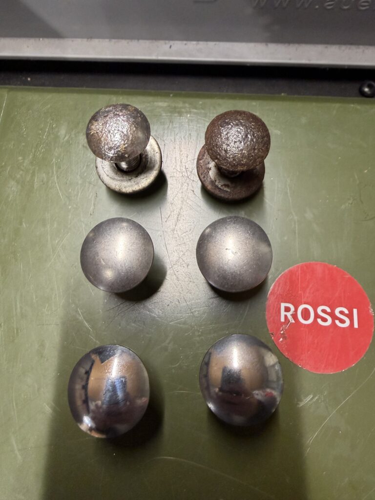 Dafür die Schlossschrauben an der Stossstange. Ich vermute die waren mal chromig. In Chrom habe ich die aber nicht mehr gefunden, oder sie waren zu teuer. Also einfach welche in Edelstahl gekauft und poliert: